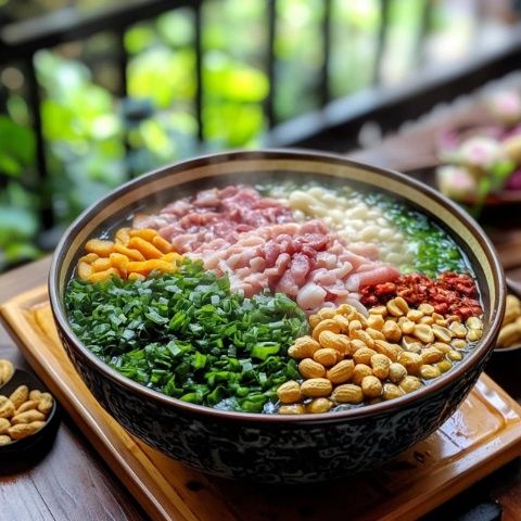 如果不吃泡炒米,家鄉的傳統早餐可能是隔夜剩飯或粥。夏天,人們更偏愛粥來補充水分,配上腌制蔬菜和黃豆,簡單卻美味。尤其黃豆經過炒熟調味,與稀飯搭配,帶來無比的滿足感。