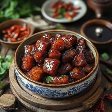 將新鮮的豬腳用清水仔細沖洗,去除表面的雜質和多余毛發,然后切成適中的塊狀。在鍋中加入足量的水,放入豬腳,添加一些切好的生姜片和適量黃酒,進行初步煮沸以去腥。待水燒開后,持續煮約5分鐘,之后撈出豬腳,再次用清水沖洗干凈,瀝干水分備用。鍋中加入適量油,放入冰糖,用小火慢慢加熱,直至冰糖完全融化并變為紅棕色。這時迅速將焯過水的豬腳放入鍋中,翻煮均勻,使每一塊豬腳都裹滿糖色。加入切好的姜片、肉桂、香料八角和花椒粒,炒出濃郁的香味。然后依次倒入生抽醬油、老抽醬油、豉油和米酒,再次翻煮均勻,確保豬腳充分吸收調料的味道。向鍋中加入足夠的清水,水量要能完全覆蓋豬腳。大火燒開后轉為小火,蓋上鍋蓋,慢燉大約1.5小時,直至豬腳變得十分軟爛且入味。燉煮完成后,依據個人口味加入適量食鹽和雞精粉進行調整,然后改用大火收干湯汁。在此過程中要不斷翻動,以使豬腳表面裹滿濃郁的醬汁。最后將紅燒豬腳盛出,撒上一些蔥花作為點綴,香氣四溢,色澤誘人,讓人垂涎欲滴!